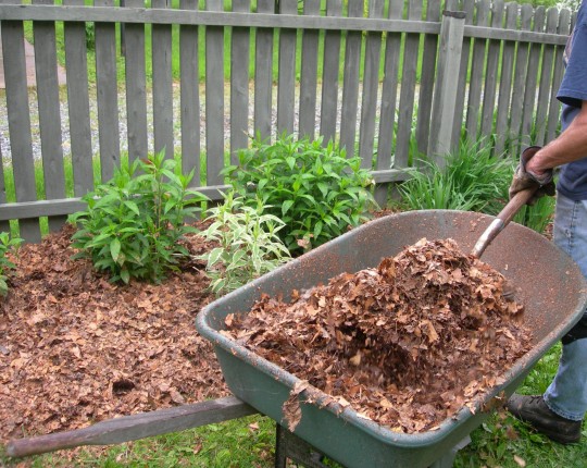 You can have as much free mulch as you can with fallen autumn leaves. Pile them up as high as you can. If there is more room for two or three leaf bins in your yard, then you can even have well-rotted leaf mould for enriching the soil.